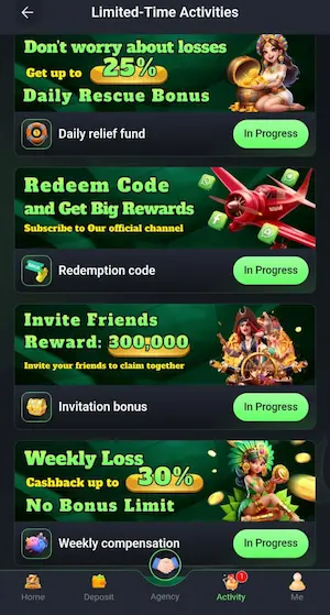 The platform offers daily login rewards and activity-based bonuses depending on specific conditions mentioned inside the app.
