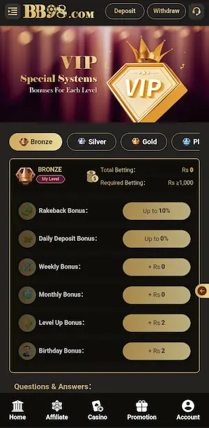 The platform includes a VIP system where users can unlock extra benefits by upgrading their level. These benefits may include: