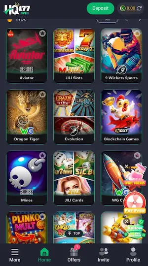 HQ177 App generally offers a clean and simple interface. The layout is designed so that players can easily navigate between different sections such as game categories, payment options, and account settings.