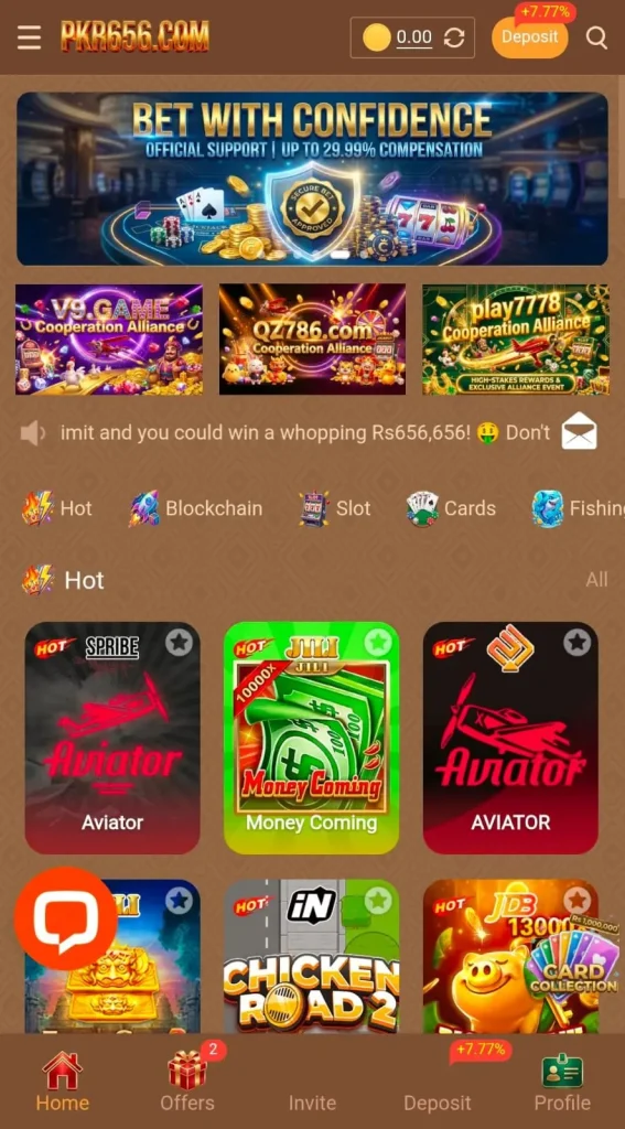 PKR 656 Game is a mobile-based online gaming platform that allows users to play different types of games and earn rewards. The app is designed mainly for users in Pakistan, offering local payment options and a simple registration process.