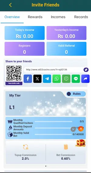 Your earnings can vary based on gameplay and referrals. Some users earn small amounts like ₹50, while active players can make more over time.